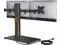 Perlegear Dual Monitor Stand with Power Strip, Freestanding Computer Monitor Stand for 2 Screens up to 32 Inch, Monitor Stand Riser with Glass Base and Adjustable Arms, Holds 22 lbs per Arm, PGTVS41B