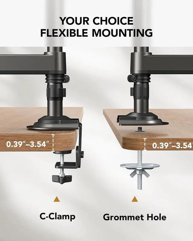 Effortless Installation:Thanks to its streamlined 1-piece design and all-inclusive hardware kit,installation is a breeze.Simply follow three easy steps:1.Secure the clamp to your desk,2.Attach the VESA mount to your monitor,and 3.Make a tension adjustment.Even those who have never installed huanuo monitor stand