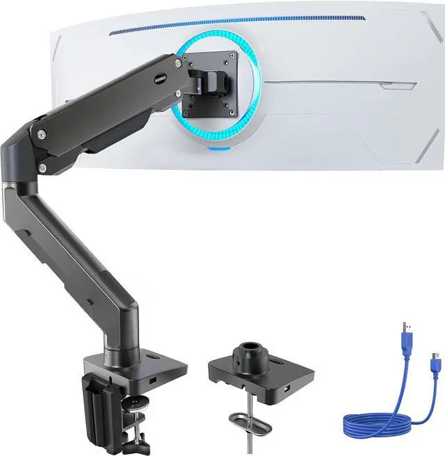 Efficient Desk Organization: This computer monitor arm integrates a USB 3.0 port, supporting 500MB/s data transfer for easy device connectivity and charging. The built-in cable management system can help clear up to 30% more desk space, making it ideal for a minimalist setup.
