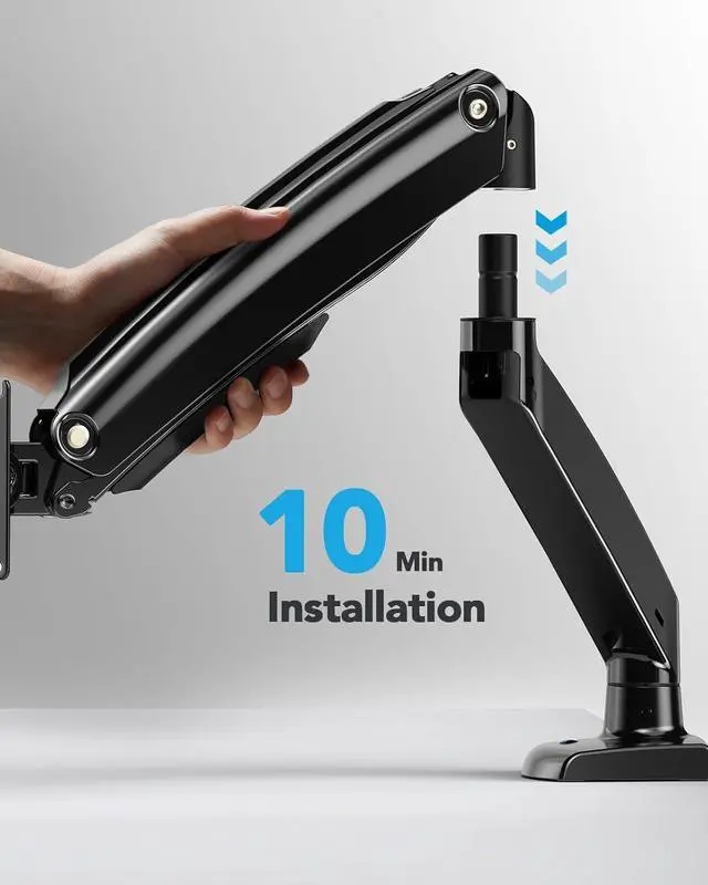Quick and Simple Setup: The single arm monitor mount comes with all the necessary hardware for installation, including C-clamp and grommet mounts that fit desks from 0.39" to 3.54" thick. Even first-time users will find the installation process straightforward and quick, allowing for a secure setup in minutes.(Pro tip: For the best stability, place it on a solid wood desk without any crossbars.)