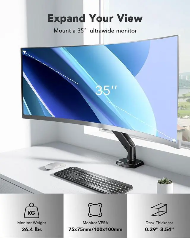 Reliable Compatibility for Diverse Displays: This heavy-duty monitor mount is designed to hold displays ranging from 13 to 35 inches, weighing up to 26.4 lbs. It's perfect for students, remote workers, and professionals who need an ergonomic and sturdy setup for single-screen monitors.
