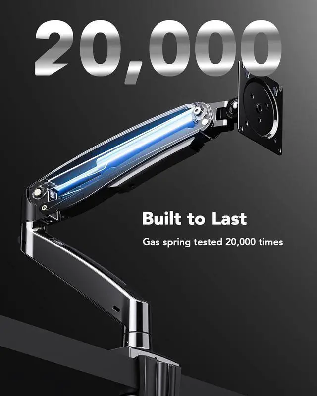 Engineered for Durability and Stability: Constructed with aerospace-grade aluminum alloy, this ultra-strong monitor stand has been tested for over 20,000 motion cycles (equivalent to over 10 years of daily use). It can support monitors up to 35 lbs, providing steady performance even during extended typing sessions.