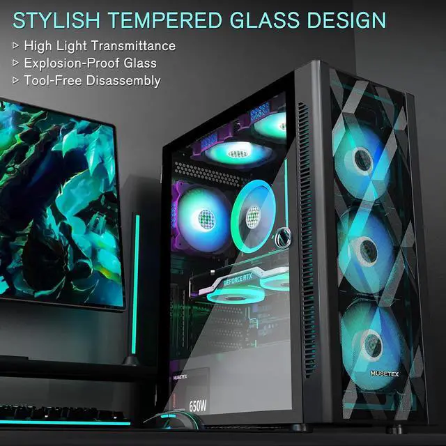 After view MUSETEX item description,you will be pleasantly surprised by our configuration.Reasons:Has 6 auto-adjustable speed PWM ARGB fans;Computer cases Bestselers top10 are all old designs,none of which are as popular as our cases that have side opening door.No need to remove screws,can super easily open inner case to clean radiator and graphics card dust,also easy to put in different dolls.Friends will think your case is cool!