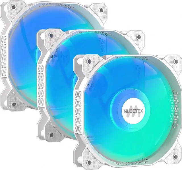 MUSETEX Y6 PC CASE ATX 6 PWM ARGB Fans Pre-Installed Bundle MF 120MM PWM ARGB Reversed-Blade Computer Case Fans 3-Pack