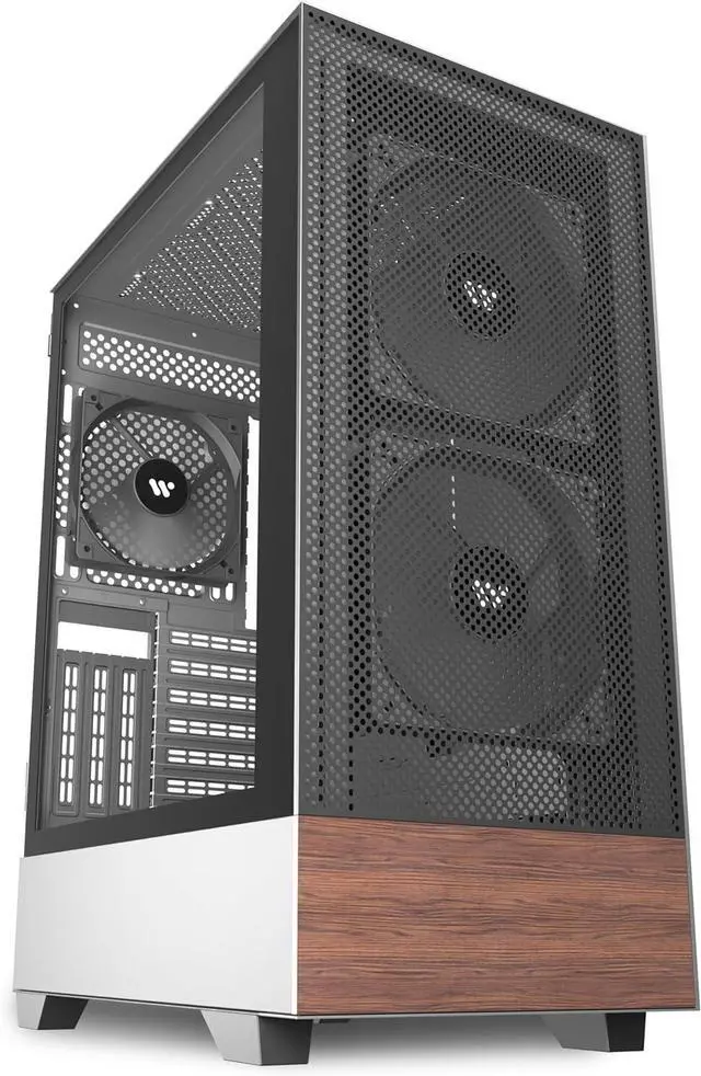 KEDIERS PC CASE ATX 3 Case Fans Pre-Installed, Mid Tower Computer Case with Tempered Glass, Printed Walnut Wood Panels,Support 360mm Radiator,Black Gaming Desktop Case (H3)