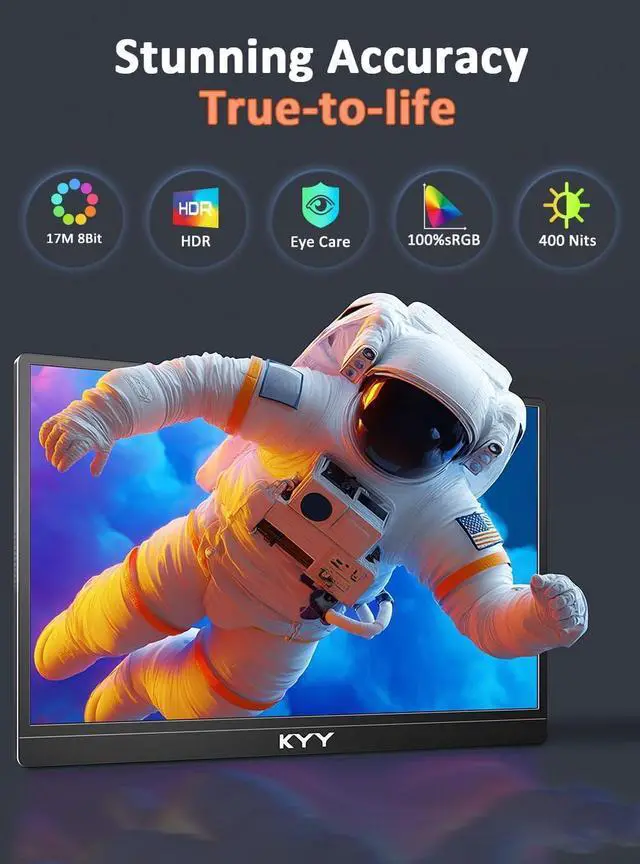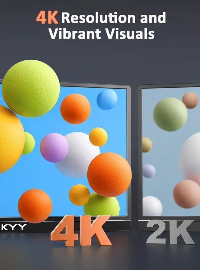 [ True 4K UHD Portable Monitor ]: KYY 15.6" portable monitor features an S-grade IPS panel, boasting 4K UHD resolution (3840 x 2160), Combining 4K micro-precision with 60 Hz smooth motion, KYY 4K portable monitor delivers an entirely new sensory experience of pixels and detail, satisfying gamers' desire for a seamless gaming experience. It provides stunning 4K visuals, creating perfect visual harmony.