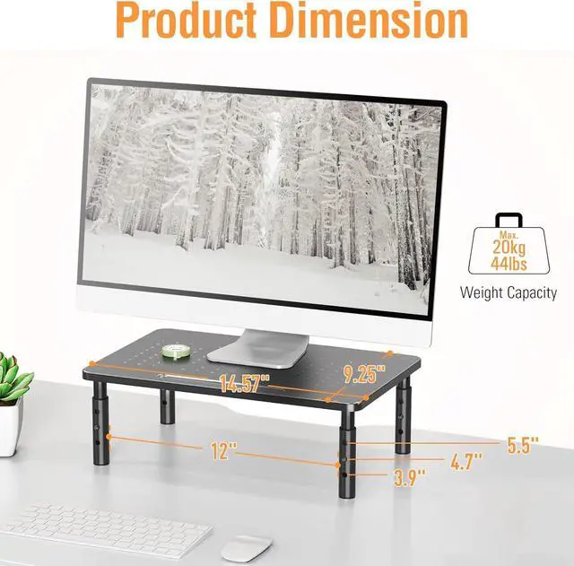 3 HEIGHT ADJUSTMENTS - This monitor riser comes with 3 adjustable height levels that you can adjust it to 3.9/4.7/5.5. Simply press the button on the leg and lift the platform to adjust to different heights as you desired.
