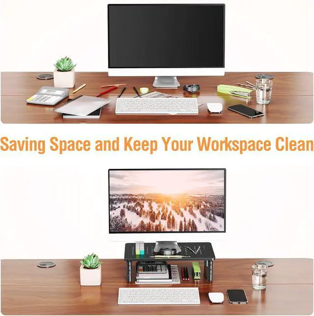EFFICIENT WORKING SPACE - Stack two screen stands together to get more storage space while it measures 14.6x9.2 for each platform. It is a screen riser, but also a desk organizer to provide extra space for your office items. Keep everything in order and maintain a cleaner desktop.