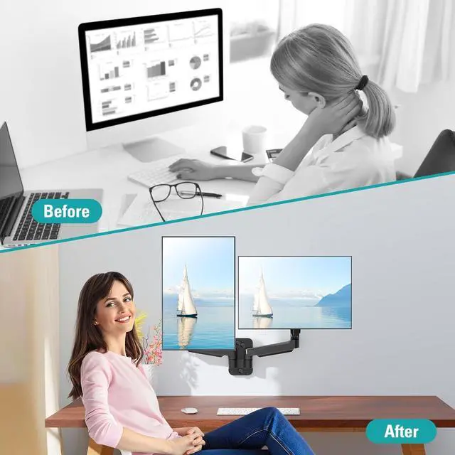 Free Up Your Workspace : Double monitor wall mount frees up valuable space on your workstation by holding your monitor on the wall. Maximize your workspace and productivity by freeing up desk space and allowing for a range of adaptable positions for your displays. Please do not install into drywall alone
