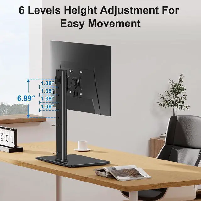 Ergonomic Design - Comes with adjustable bracket offering tilt +30°/- 30°, swivel +45°/- 45°, rotation 360°, and height adjustment up to 6.89" to fit different sitting or standing positions. The free-standing design is more convenient and no need for drilling any grommet hole or using any clamp.VESA mount offers improved viewing comfort for you