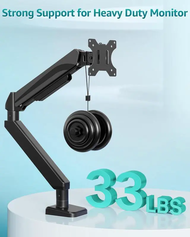 Multi-Axis Adjustmen, Customizable Viewing Angles:The heavy duty single monitor arm can tilt90°to -45, swivel ±90°and 360°rotation for personalized viewing angles, accommodating different heights and postures to alleviate neck strain for ergonomic comfort. Multi-dimensional height adjustment to meet diverse user heights and scenarios, enhancing comfort and productivity.