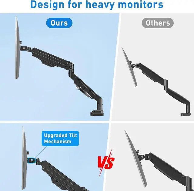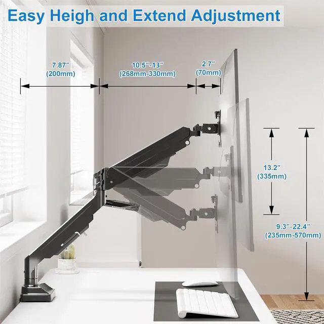 Space-Saving & Cable Management - Gas Spring monitor mount minimizes desktop clutter, creating a clean and organized workspace. Cable management help to hidden cable channels. It's a ideal for both home offices and professional environments