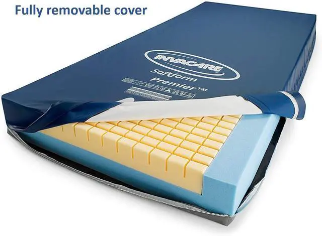 Invacare Premier Hospital Bed Mattress, Foam, Fluid-Resistant Cover Flexes in Right Places to Relieve Body Pressure, Firm Mid-Section & Soft Head/Feet Section, Enhanced Side Support for Safe Transfers