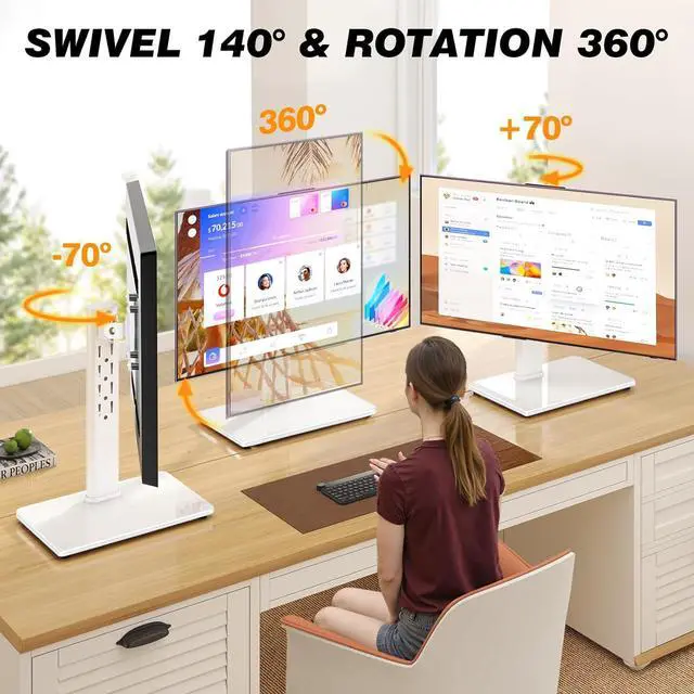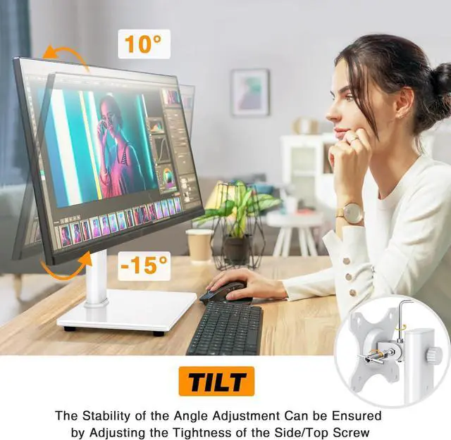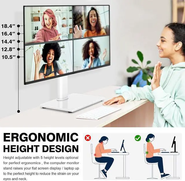 Ergonomic Design : The Free-Standing computer monitor stand riser offers -15° to +10° tilt,-70° to +70° swivel, 360° rotation and 5-level height adjustable from 10.5"-18.4". Adjust the Angle and height of the screen flexibly, release the pressure on your neck and shoulders, and maintain a good vision. You are in good shape at work and at home.