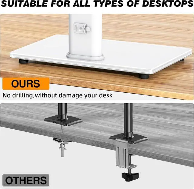 Avoid Desk Damage : This vesa stand has a 1/3" inch Tempered safety glass base and steel pole. It keeps the display standing up without drilling, leaving your desktop intact. Due to it is not fixed on the desktop, it is easy to move and facilitate small office meetings of some people.