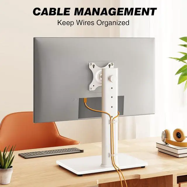 TAVR Furniture Single Monitor Stand VESA Mount for 13-32 Inch Screens, Free-Standing Monitor Riser with Swivel Tilt Rotation Height Adjustable, Universal Desk Stand up to 44lbs, White
