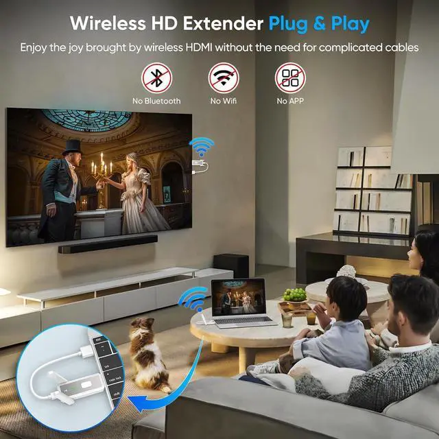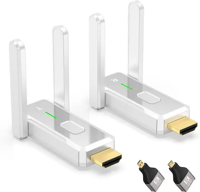 Extended Range, Plug and Play : HDMI sender and receiver wireless equipped with a dual-antenna system that enhances signal penetration, it achieves a transmission distance of up to 500 feet/150 meters, catering to diverse needs in homes and offices. No Wi-Fi, no Bluetooth requiredjust plug in and connect in seconds for a smooth video experience that enhances your life and work. Note: Transmission distance may reduce to 100 feet/30 meters when passing through walls.