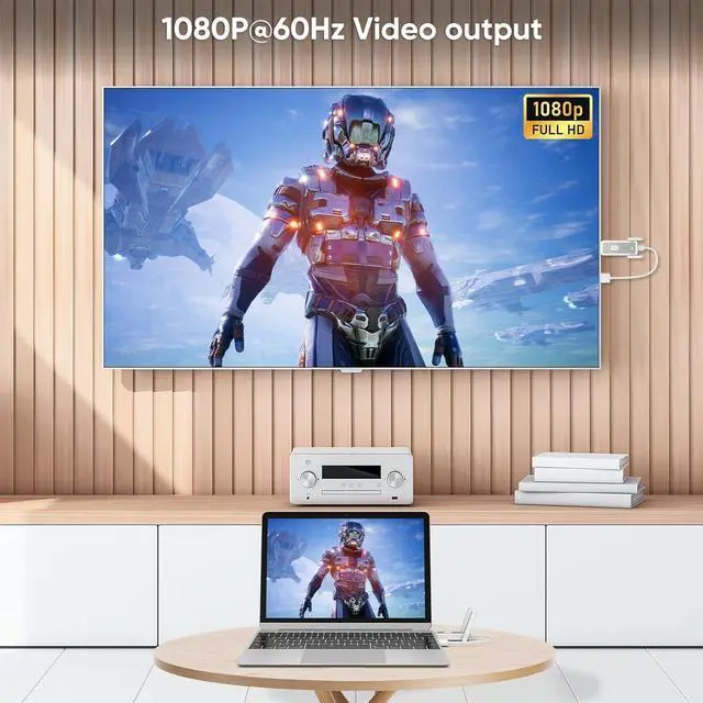 Universal Compatibility : This new upgrade wireless HDMI connector equipped with 2 accessories: Micro HDMI adapter/Mini HDMI adapter.Seamlessly interfaces with most HDMI display devices on the market. Effortlessly cast content from laptops, PCs, Macbooks, cameras, set-top boxes, cable boxes, Blu-ray/DVD players, gaming consoles and more to HDTVs, projectors, monitors,smartphones, tablets, iPads, and supports popular video services like Netflix, Prime Video,Spotify TV. Note: If the HDMI wireless kit is used in an Apple TV box, the output resolution of the TV box needs to be adjusted to 1080P 60Hz.