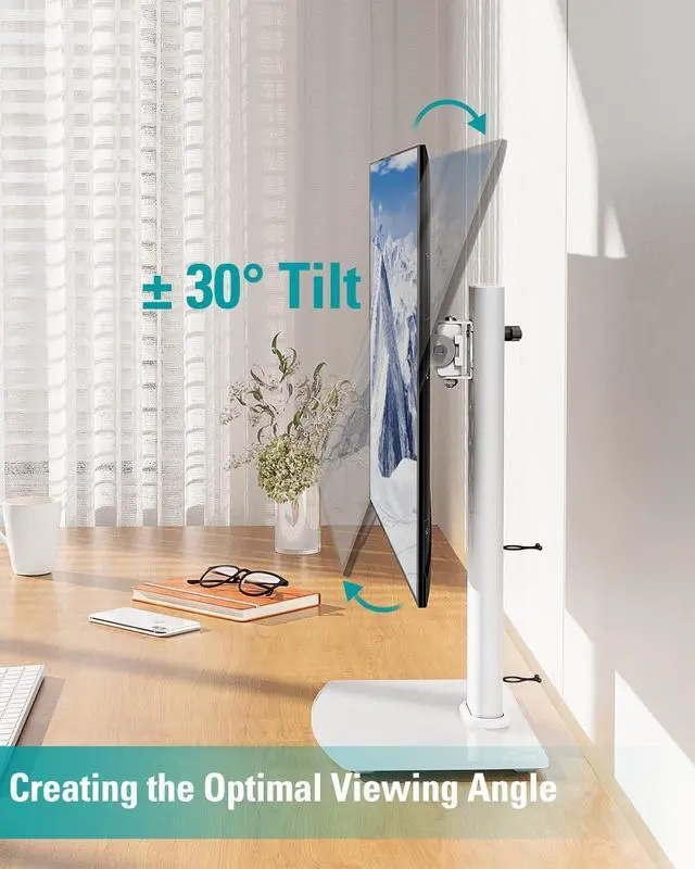 MOUNT PRO Single Monitor Stand Fits Max 32 inch Screen, Free-Standing Computer Desk Stand, Display Mount with Height Adjustable, Swivel, Tilt, Rotation, VESA Monitor Stand 100x100, White