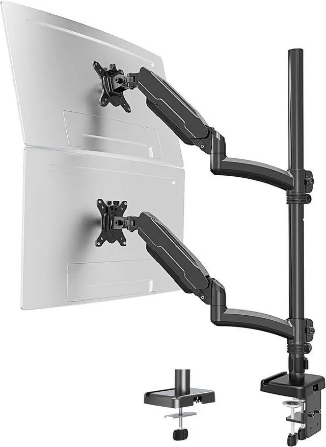 Double Benefits - The pole-mounted design saves over 80% of desktop space and keeps your workstation clutter-free. The Vertically Stacked option allows for a better viewing experience with two stacked monitors. You can set your monitors to customized angles and positions freely while saving valuable space on your desktop.