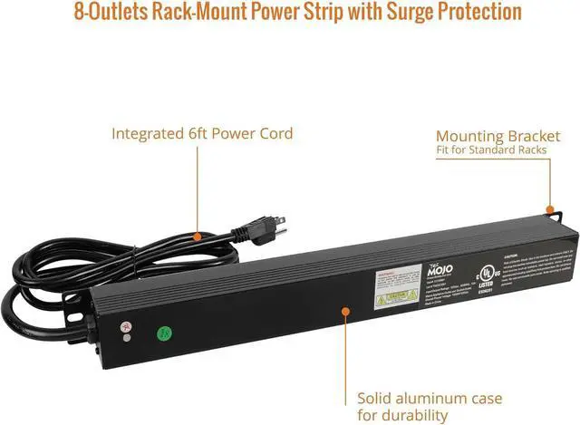 Tecmojo 1U Rack-Mount Horizontal 8-Outlet Power Strip UL Listed PDU with Surge Protection LED Indicators 6ft Cord Power Distribution for IT and Network Server Racks