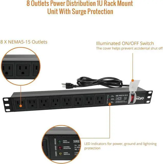 • Efficient Power Distribution: Delivers 12A (US Listed 12A) power through 8 NEMA 5-15R ports, ideal for server racks, network setups, and office environments