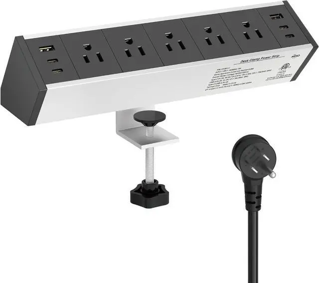 Tecmojo Desk Clamp Power Strip 5 Outlet with 2 USB A and 4 USB C Ports, 6 ft Cord, Desk Outlet Station Fit 1.6" Tabletop Edge,Over Loading Protection,ETL Listed,Black