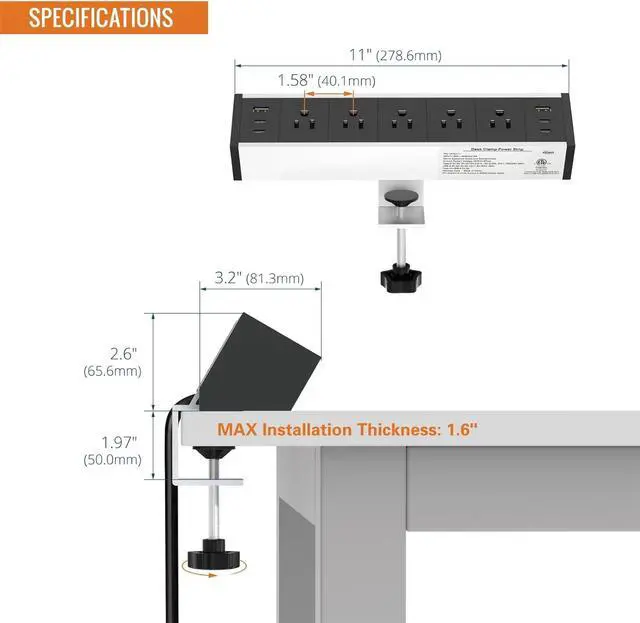 Adjustable Desk Clamp & Neat Cable Management: Clamps fit desks up to 1.6" thick; keeps cables organized and power easily accessible