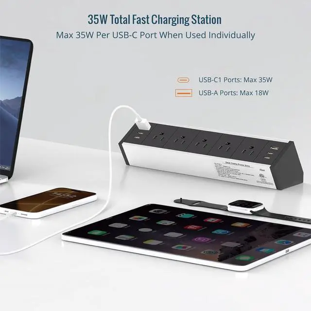 Fast & Convenient Charging: Provides 35W total output with 4 USB-C and 2 USB-A ports to power multiple devices simultaneously