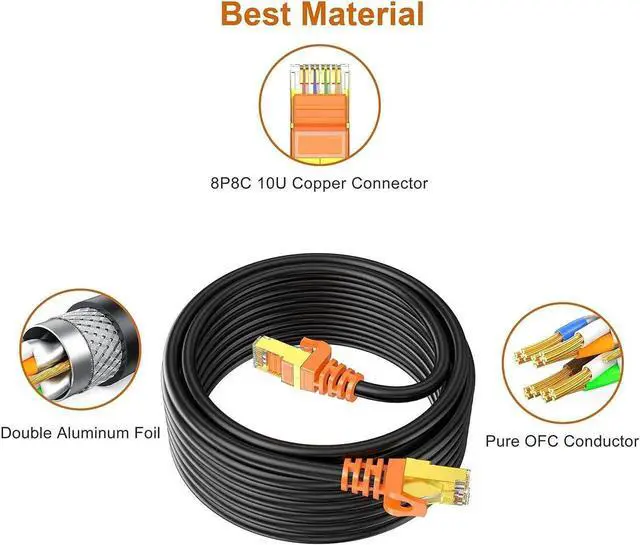 Weatherproof & UV ResistantBuliding with high quality UV-resistant PVC jacket, the outdoor rated Cat7 Ethernet cable is anti-aging. It can withstand direct sunlight and extreme cold & humid & hot weather yet still working efficiently. Premium design with great quality.