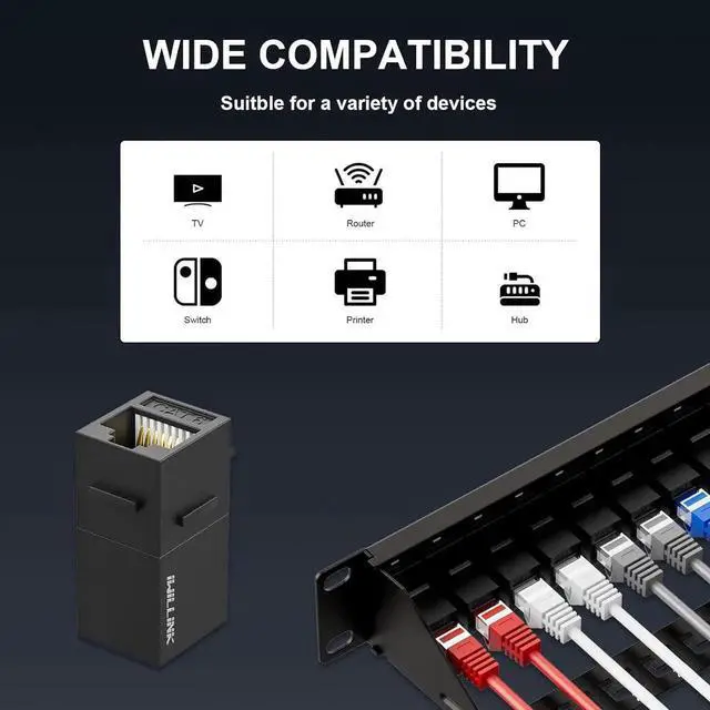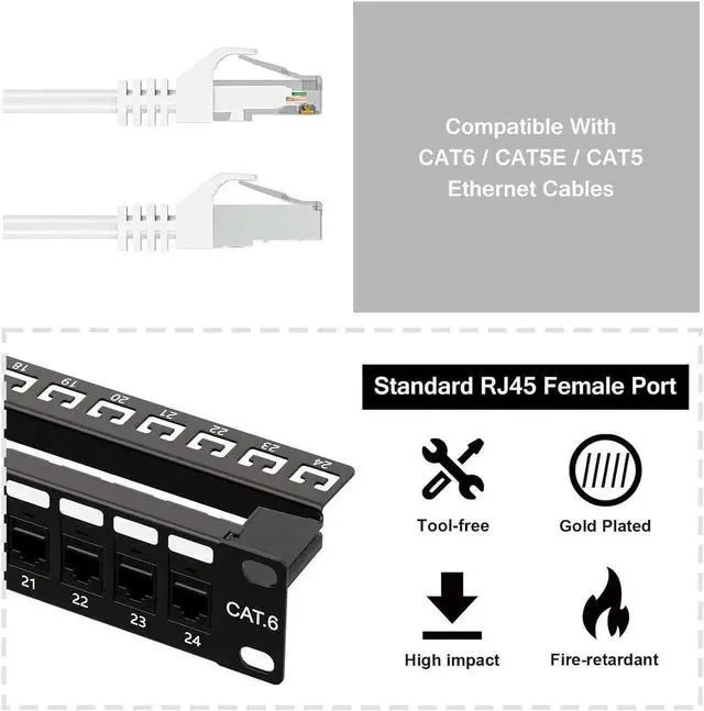 Toolless TerminationIwillink Cat6 pass through patch panel 24 port came with couplers making it easier to connect the cables without any punching down. Simply plug the Cat6 cable into the RJ45 coupler jacks on either side of the ethernet patch panel.