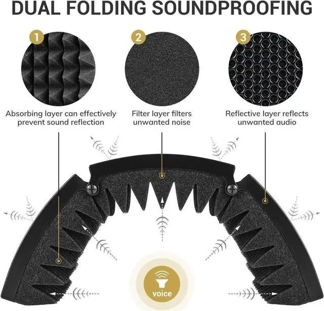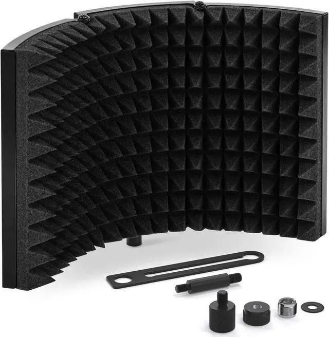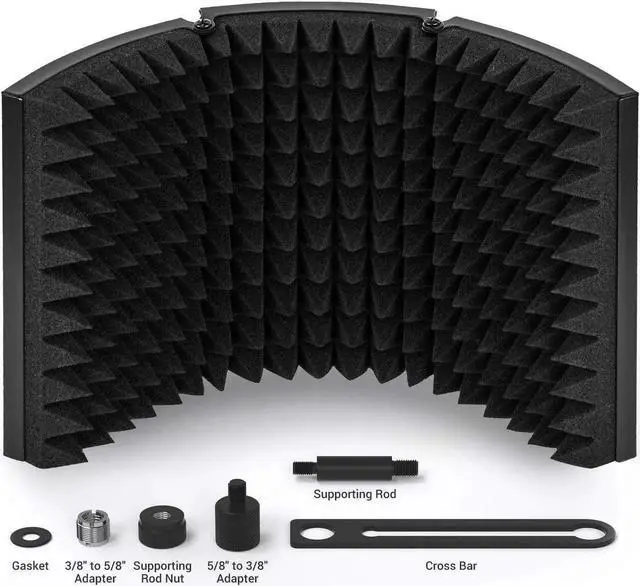 Versatility: The microphone isolation shield can be fixed on a desk or tabletop, and also can be mounted to a microphone stand. Great for professional vocal/acoustic recording and podcasting sound booth.