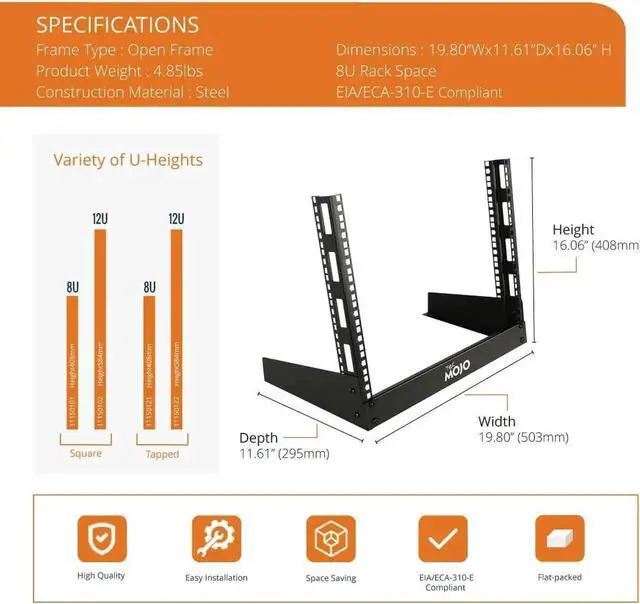 CONVENIENT DESIGN: With 360-degree open frame structure, its easy to access sever equipment while occupying limited space. Units (U) heights clearly marked