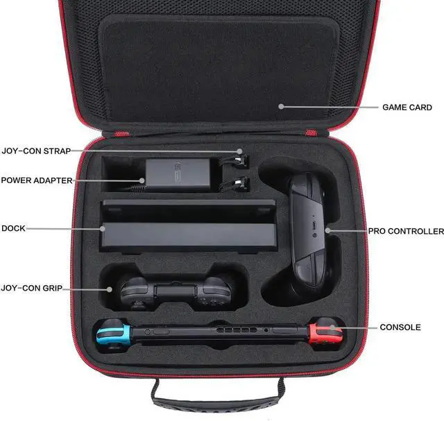 High quality pre-cut foam protects complete Switch system and Pro controller well, the hard shell of the case prevent damage from dropping, the foam is snug so that your stuffs will not move around in case.