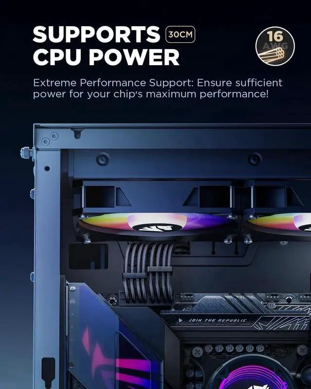Upgraded 16AWGDifferent from 18AWG extension cables on the market, Asiahorse pc cable extension use an upgraded 16AWG pure copper tinned wire that can hold up to 1000W current while resistant high temperature, effectively solving the problem of power cords heating due to the use of high power products, making the power supply safer and more stable.