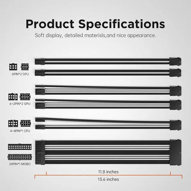 Ultimate 16AWG Copper CoreOur psu cable extension kit feature 16AWG wire gauge, meeting the UL 1015 specification commonly used in professional computer builds, ensuring low resistance and high efficiency even after extended lengths of power transmission. Suitable for high-power components like high-end GPUs and CPUs