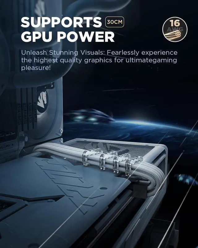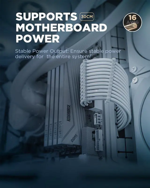 Ultimate 16AWG Copper CoreOur psu cable extension kit feature 16AWG wire gauge, meeting the UL 1015 specification commonly used in professional computer builds, ensuring low resistance and high efficiency even after extended lengths of power transmission. Suitable for high-power components like high-end GPUs and CPUs