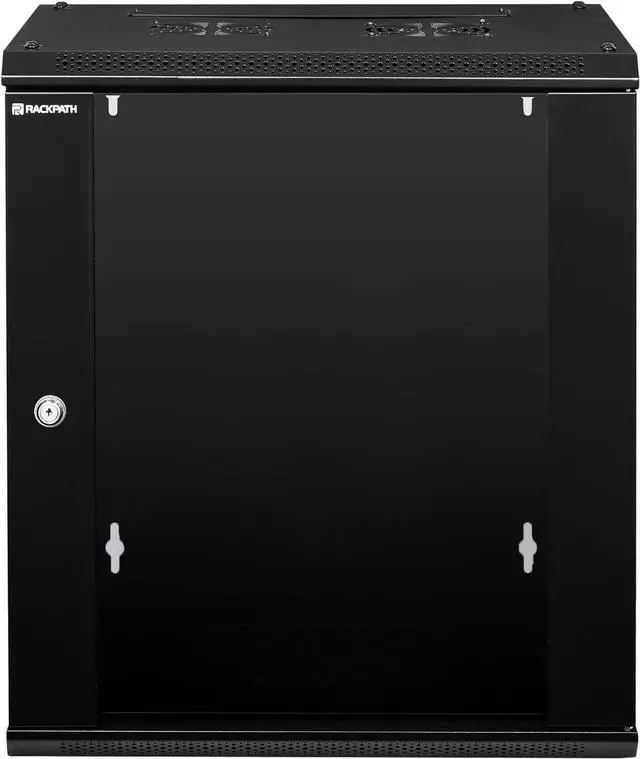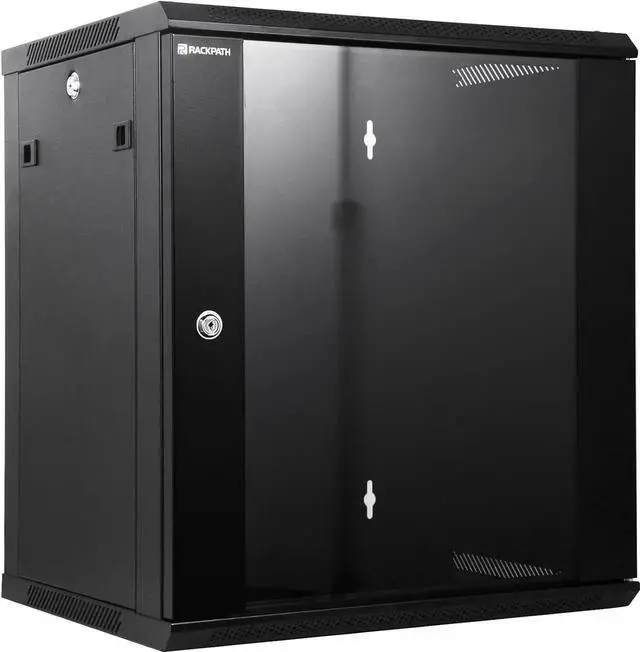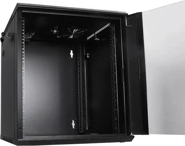 Dimensions: 21.65 " Length x 17.72 " Depth x 24.53 " Height; The wall mounting holes on the 12U cabinet are spaced 16 inches center to center for greater stability, matching standard construction framework