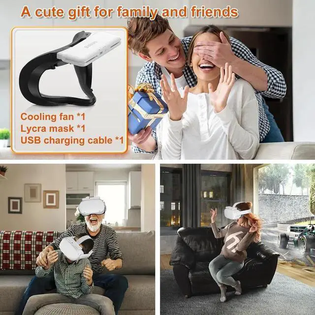 Upgraded Oculus Quest 2 Fan Temperature Control/SettingsSpecially designed for anti-fog and anti-sweat, the oculus fan has two wind speed modes, always keep the lens clear and eyes refreshed during wearing, making the VR experience more enjoyable