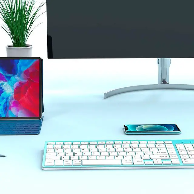 JOYACCESS Wireless Bluetooth Keyboard for Mac,Ergonomic Multi-Device Keyboard with Number Pad, Compatible with MacBook Pro/Air, iMac,iPhone,iPad, iOS, Android, Windows, Turquoise
