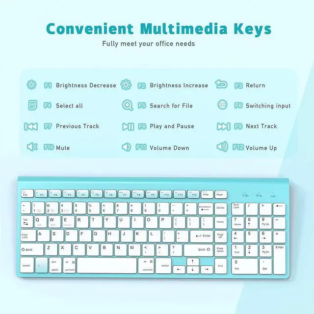 Compact Wireless Keyboard- J JOYACCESS cordless keyboard is cmpact and slim,which is perfect for saving desktop space or stowing for travel.The keyboard also has 10 additional keys that allow easy control over volume, multimedia functions, and frequently used Office applications.