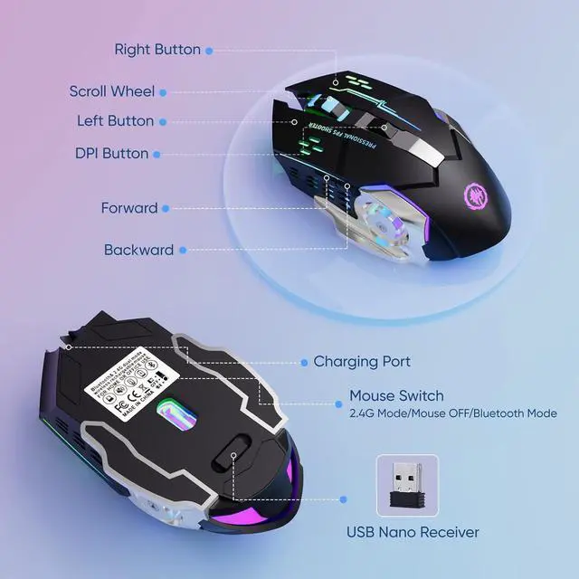 Stable Bluetooth/2.4G Wireless Connection The gaming mouse supports dual-mode connection, and meet your need on different devices. Bluetooth mode: support Windows 8/10, Mac OS, iPad, or iPhone Series (NOTE: NOTE: It is required to update your system to iPad OS 13/ iOS 13 or Above and Turn on the Assistive Touch on the iPad/ iPhone: Setting - Accessibility - Assistive Touch for an iPad usage.) 2.4G Wireless Mode: just plug the USB receiver to your PC, no additional driver or software is needed.