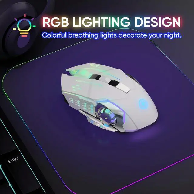 RGB 7-Color Breathing Backlit Designed with an RGB 7-color auto-switching breathing backlight mode, the wireless mouse can offer you a pretty cool visual feast when using it, especially at night. The RGB lights will auto turn off at sleep mode for power saving.