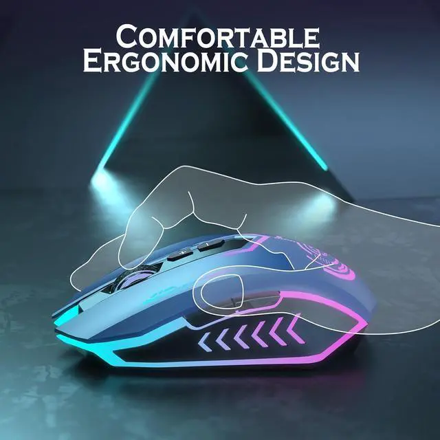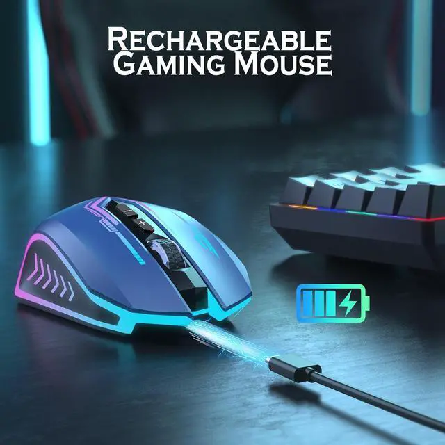 POWERFUL BATTERY LIFE - The rechargeable mouse has a long battery life between 60 hours (RGB on) and 80 hours (RGB off) on a single charge, providing you with nonstopping use. It will auto-sleep after 8 minute of inactivity for power saving. Any click will wake up this mouse. The wireless mouse gaming also can be used while charging (Note: It can only be used while charging when the nano receiver is inserted into your laptop)