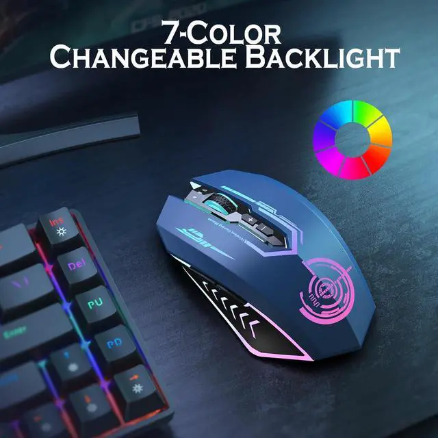 7-COLOR CHANGEABLE BACKLIGHT - 7 different LED light colors that change while in use, offering soothing ambient lighting(NOTE: It will not stay at one color. The led can not be programmed and will change automatically with 7 colors, You can turn on/off the RGB lights by pressing one of the DPI+ / DPI- buttons for 3-4 seconds.) The transparent light effect is suitable for demand for more types of games, making your mouse multi-colored