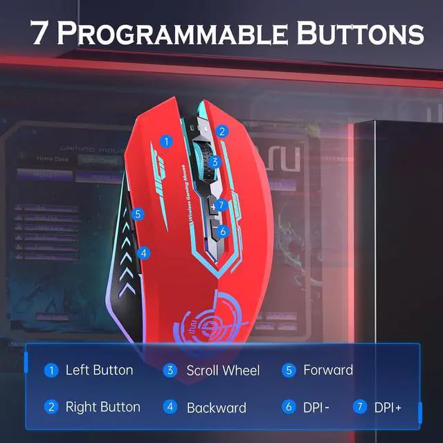 GET AWAY FROM THE CABLE - The gaming mouse adopts 2.4GHz transmission technology, providing reliable, precise and long rang connection, up to 50ft. The response is near-instantaneous. Response rate represents the data transmission speed between the mouse and computer, a higher rate of response in games competitions can better play the performance of the mouse and allows the mouse to be zero delays and no jump during fierce gaming, which is more realistic for Gaming Players