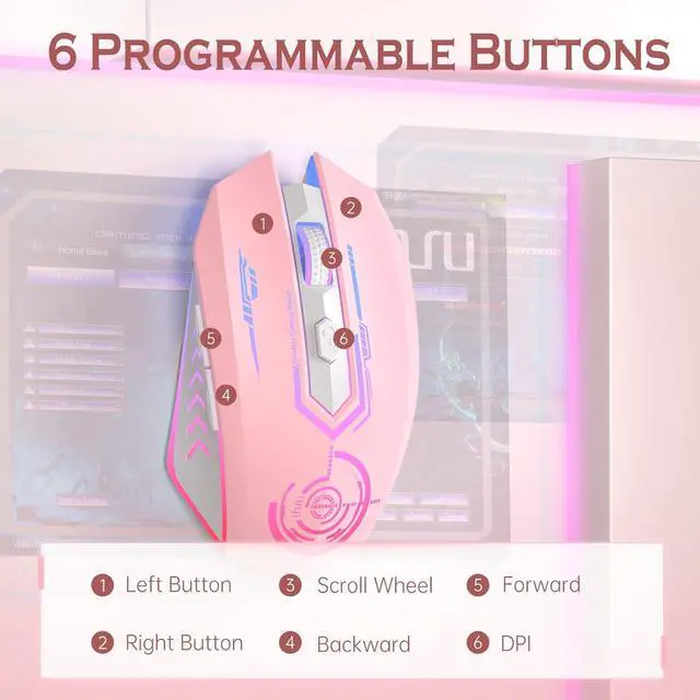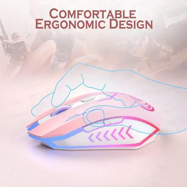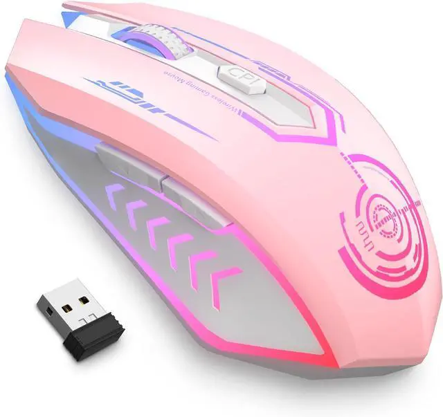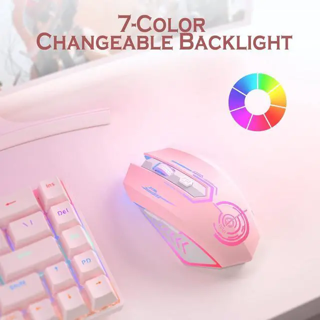 UHURU Gaming Mouse, Wireless Gaming Mouse with 6 Buttons 7 Changeable LED Color up to 10000 DPI, Rechargeable USB Gamer Mouse for PC Laptop (Pink)