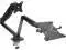 UNIVERSAL VESA LAPTOP MONITOR MOUNT - Monitor arm with laptop stand; Compatible for up to 15.6 " laptops and 32" Screens with a weight limit of 13.2 lbs. Monitor arm mount has 75 x 75 and 100 x 100 VESA patterns
