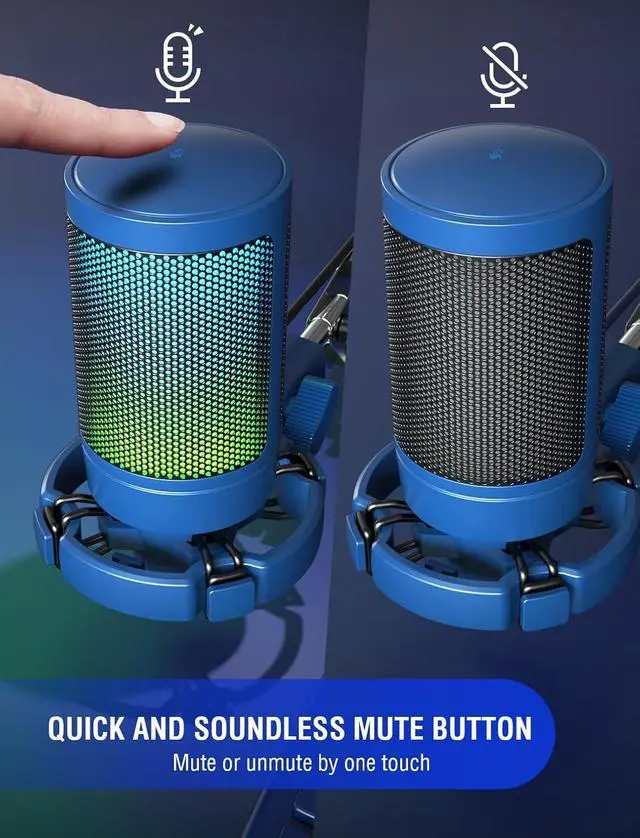 [Quick Mute Button, Handy Gain Knob] Immediately silence the USB microphone with a tap, preventing emotional outbursts to maintain a positive team atmosphere. RGB off when muted to indicate status and prevent streaming accidents. Mic volume control conveniently located on the condenser microphone is intuitive to use. You can speak at a comfortable level without shouting or whispering during game.
