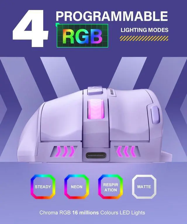 Dual Modes with Ultra-Speed Wireless TechnologyUtechSmart VENUS Pro RGB Wireless MMO Gaming Mouse is a new revolution of RGB MMO gaming mouse. It has 2.4 GHz data transmission technology with Mini signal receiver(Nano) and stable 1. 5m wire transmission that provides professional-level performance. VENUS Pro overcomes the traditional limitation of wireless latency and connectivity which offers stable and fast data transmission with 10-meter reception boundary. You can take this mouse anywhere!